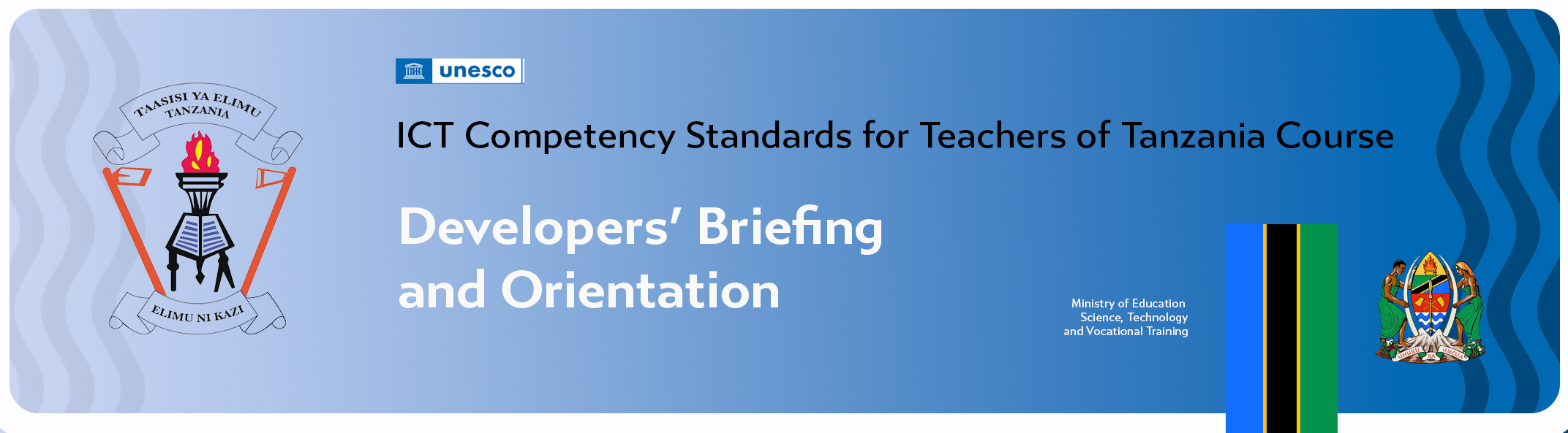 ICT CSTT Developers' Orientation by Tanzanian Ministry of Education Science, Technology and Vocational Training is licensed under a Creative Commons Attribution-ShareAlike 4.0 International License.