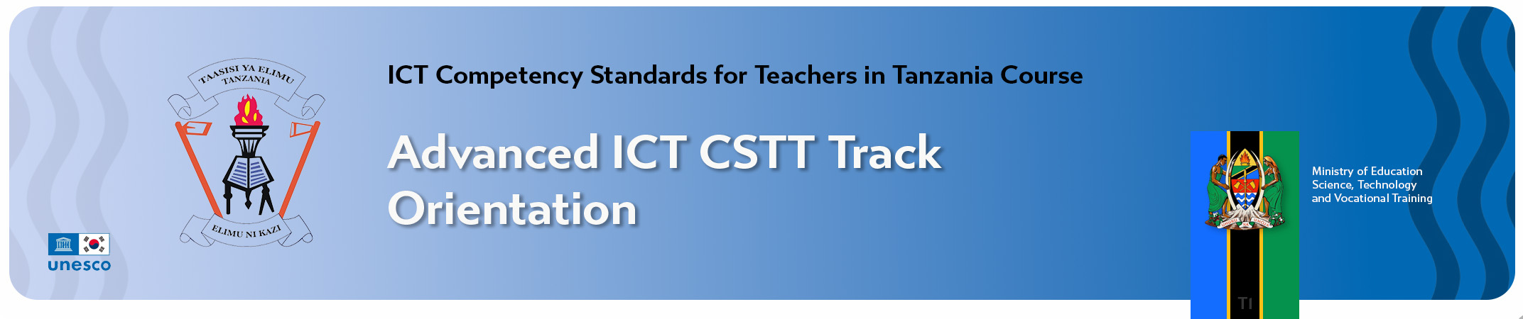 ICT CSTT Track 3 Orientation by Tanzanian Ministry of Education Science, Technology and Vocational Training is licensed under a Creative Commons Attribution-ShareAlike 4.0 International License.